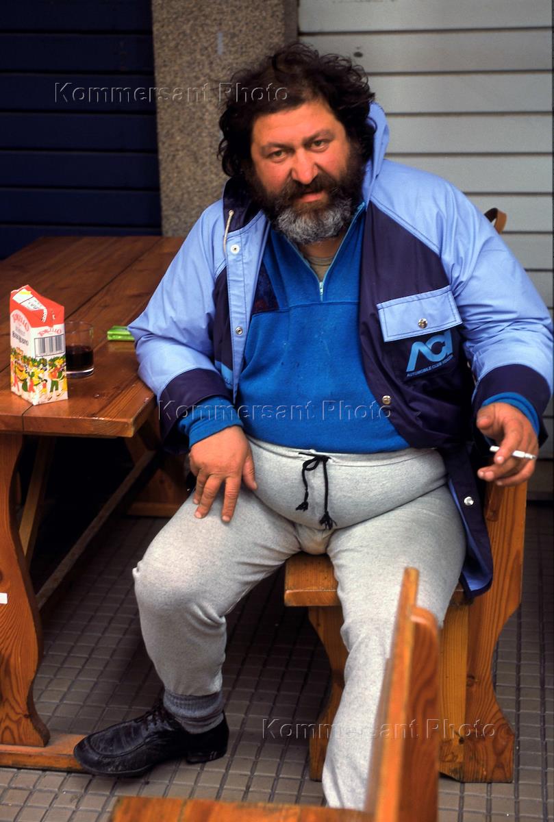 Жанрвоая фотография. Бармен с бутылкой виноградной водки - граппой.