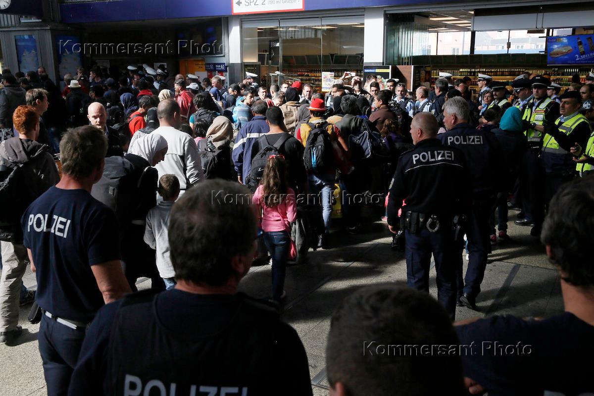 Мигранты с Ближнего Востока и Северной Африки на вокзале в Мюнхене.