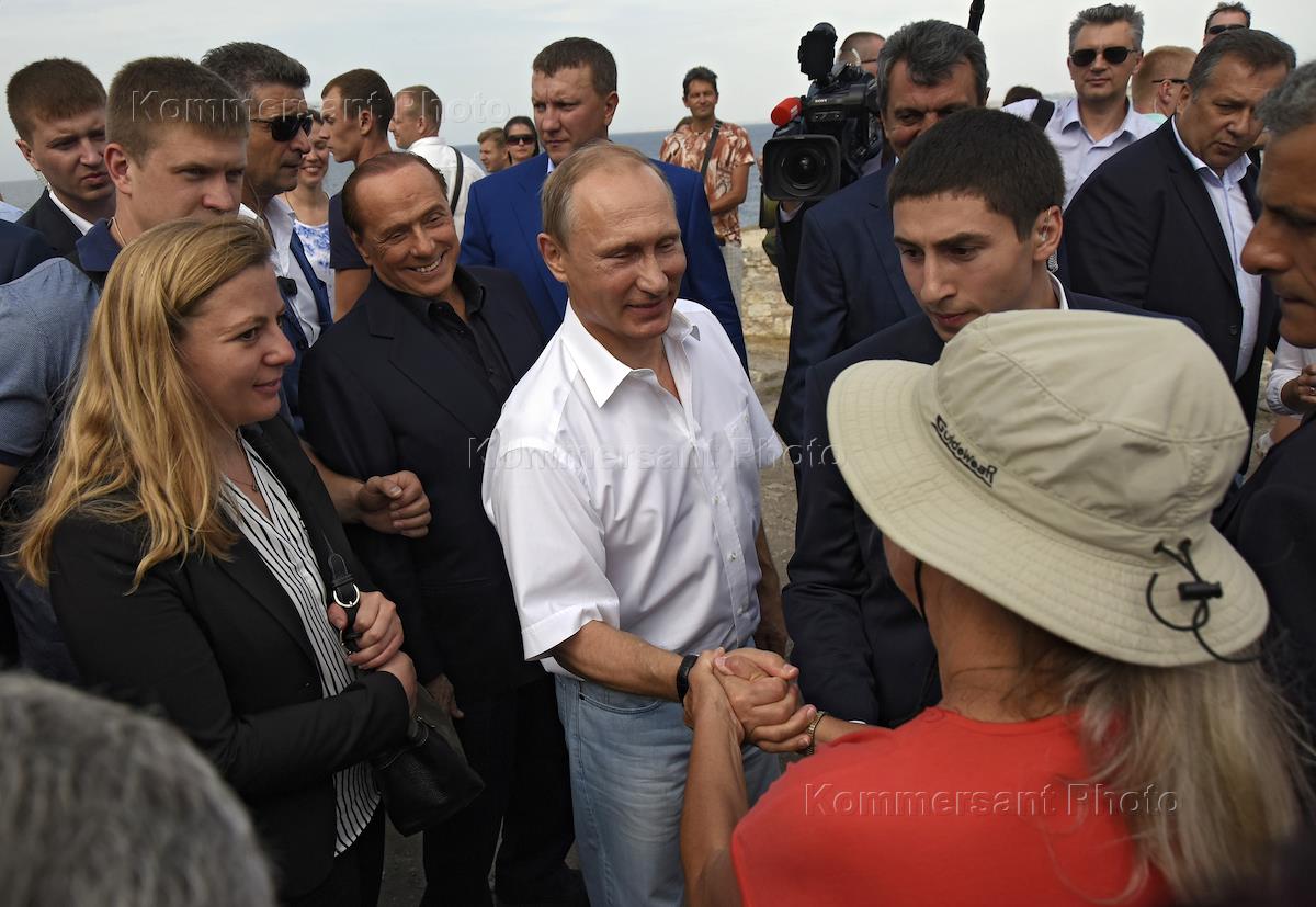 Президент России Владимир Путин (в центре), бывший премьер-министр Италии Сильвио Берлускони…