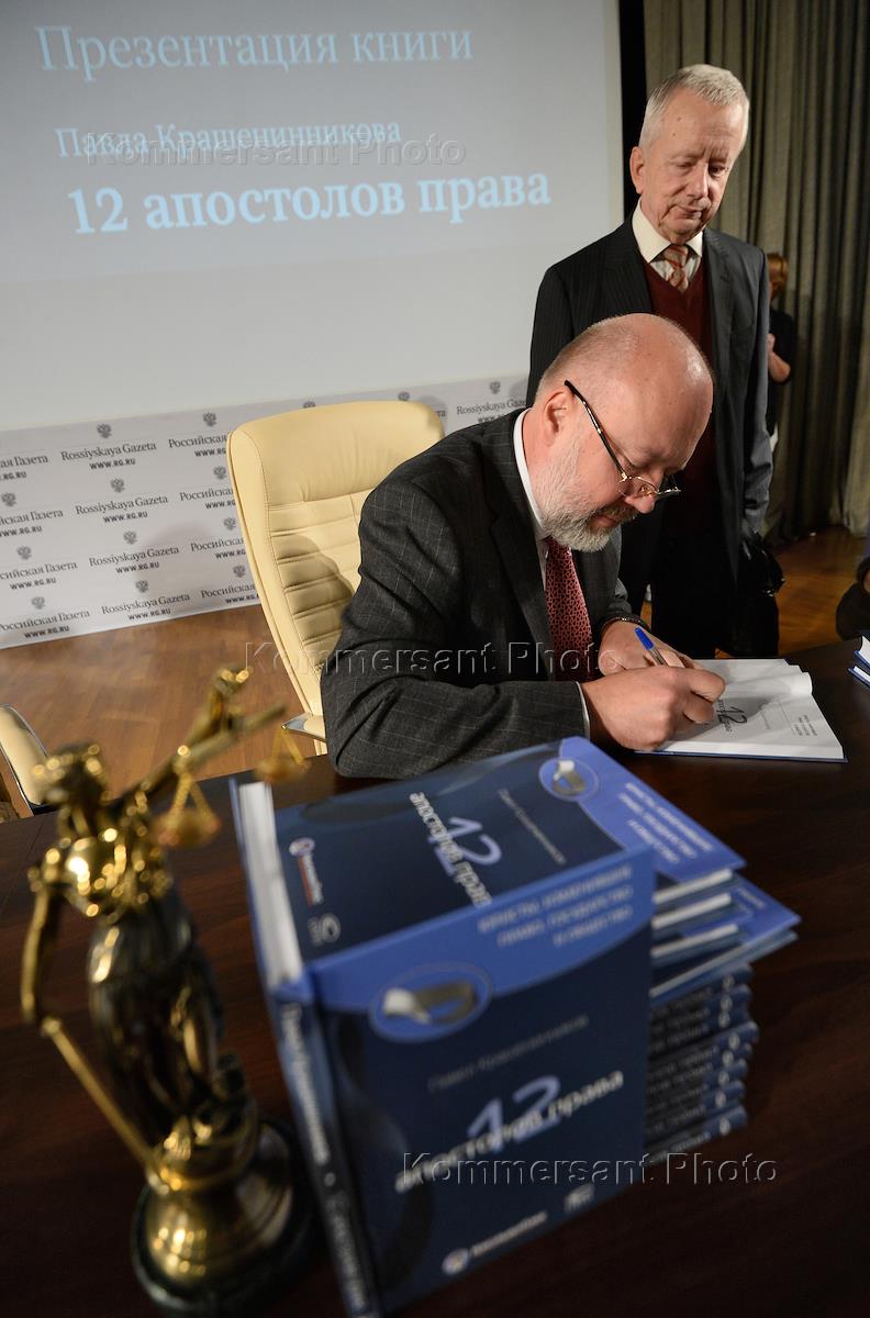 Культура Презентация книги председателя комитета Государственной думы России по гражданскому, уголовному, арбитражному и процессуальному законодательству Павела Крашенинникова "12 апостоллов права", в медиа-центре "Российской газеты".