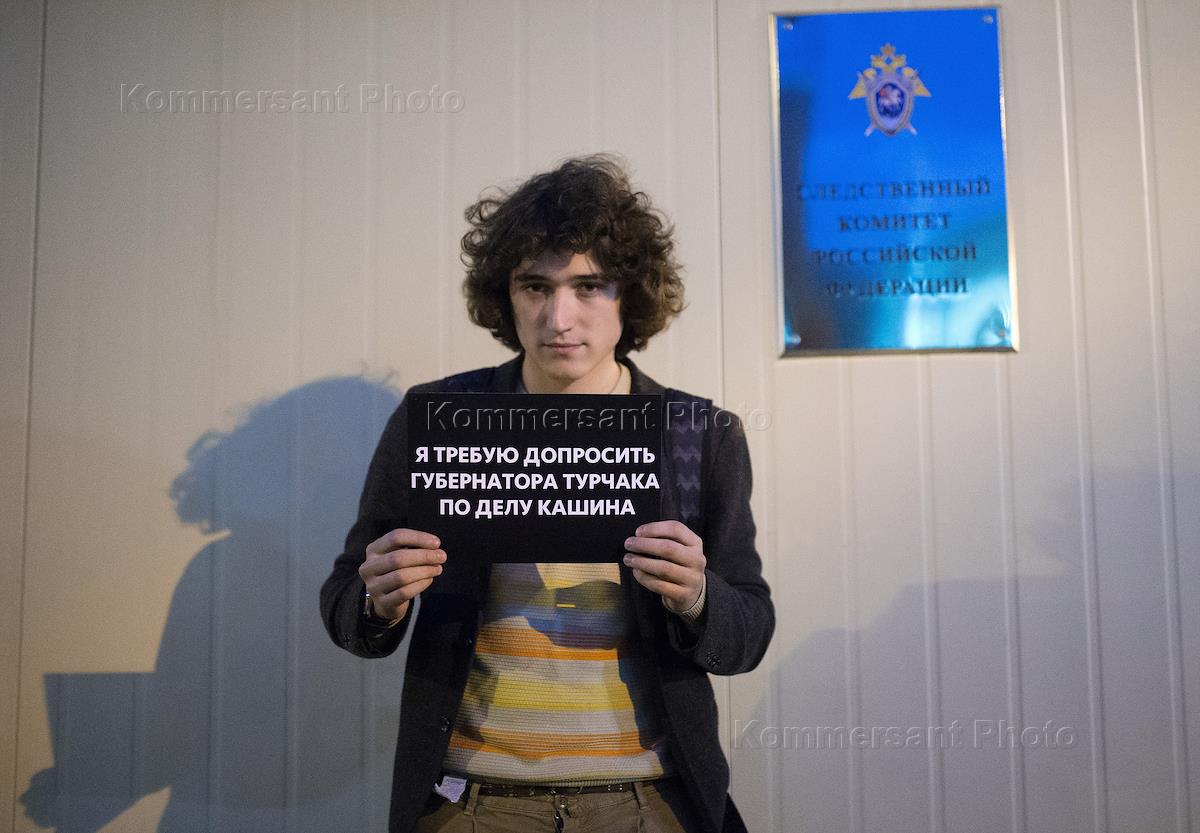 Одиночные пикеты по делу об избиении журналиста Олега Кашина. у здания Следственного коммитета России. Всеволод Чагаев.