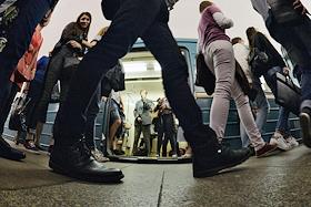 Жанровая фотография. Пассажиры на входе на станции метро "Проспект Мира" Калужско-Рижской линии.