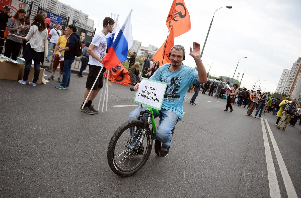 Шествие и митинг сторонников оппозиционера Алексея Навального прошел в Марьино. Участник акции с…