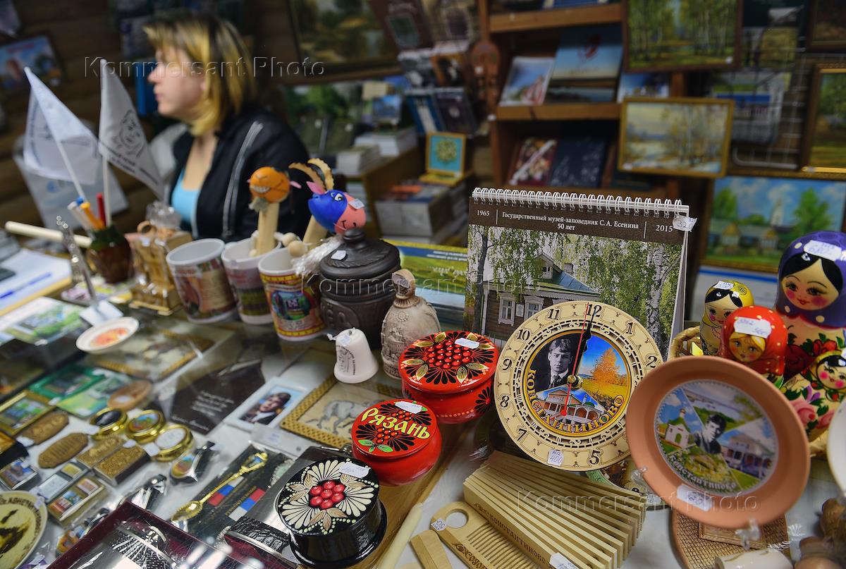 Виды села Константиново. Банки с чаем с изображением поэта Сергея Есенина, уроженца Константиново.