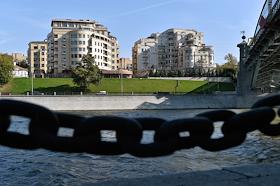 Три дома, стоящие на горе, спускающейся к набережной по адресу Ростовский 7-й переулок., дом 11.