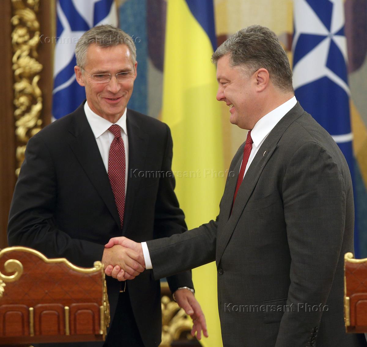 Генеральный секретарь НАТО Йенс Столтенберг (слева) и президент Петр Порошенко (справа) на заседании…