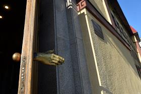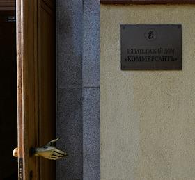 Жанровая фотография. Дверная ручка на здании Издательского Дома (ИД) "КоммерсантЪ" с улицы.