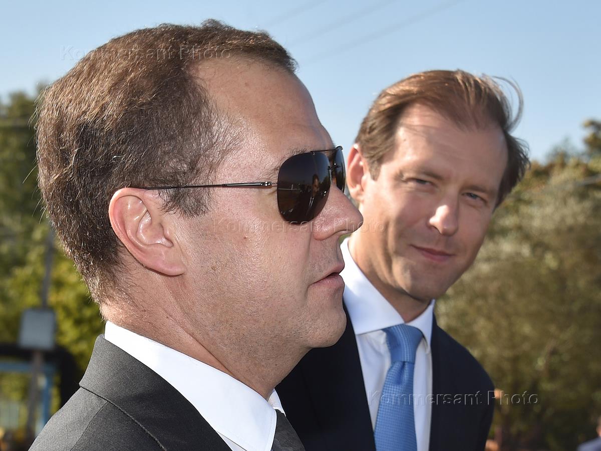 Рабочая поездка председателя правительства Дмитрия Медведева в Курск. Cлева направо: министр…