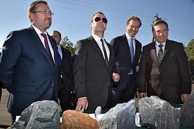 Политика Рабочая поездка председателя правительства Дмитрия Медведева в Курск. Посещения Михайловского горнообогатительного комбината. Церемония запуска комплекса обжиговой машины № 3 Михайловского горнообогатительного комбината.