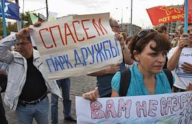 Общегородская акция партии "Яблоко" против застройки парков Москвы, с участием Сергея Митрохина, на площади Краснопресненской заставы.