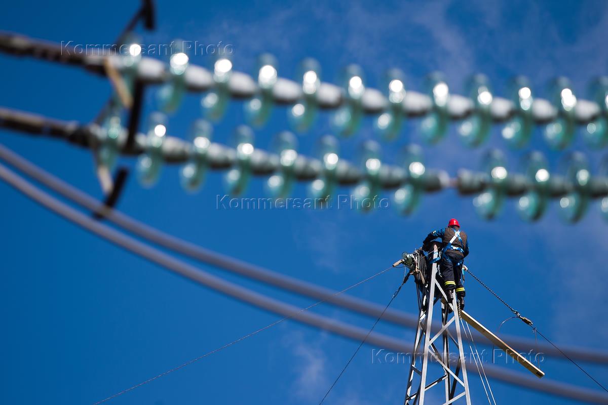 Замена грозового кабеля на линии электропередач идущей из Калининградской области в Литву.