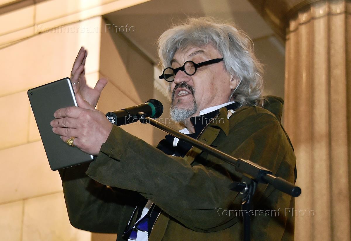 Художник Александр Пономарев на церемонии открытия своей выставки "Ветрувианский человек" в…