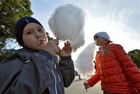 Дети в парке "Музеон" и Центрального парка культуры и отдыха (ЦПКО) имени М.Горького едят сладкую…