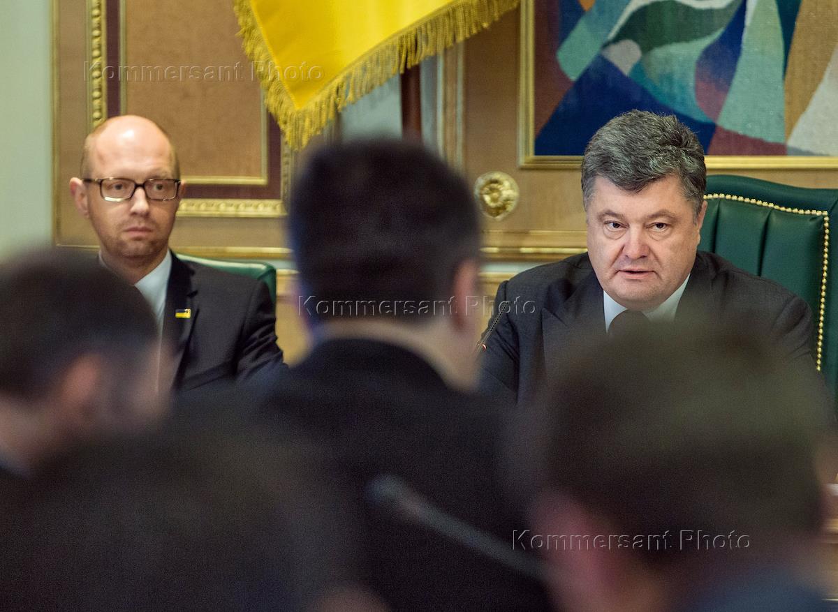 Премьер-министр Украины Арсений Яценюк (слева) и президент Украины Петр Порошенко (справа) на…