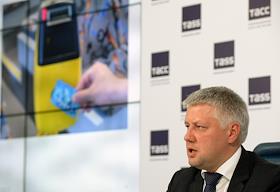 П/к генерального директора ГУП "Мосгортранса" Евгения Михайлова, в пресс-центре ТАСС.
