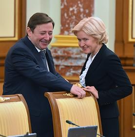 Заместители председателя правительства России Александр Хлопонин (слева) и Ольга Голодец (справа)…