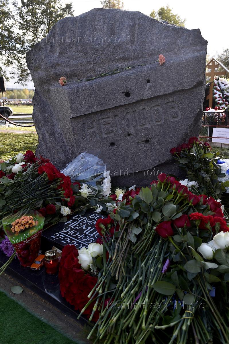 Церемония установки памятника на могиле политика Бориса Немцова на Троекуровском кладбище.