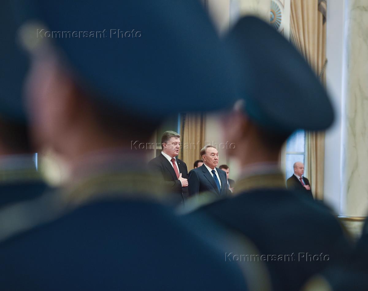 Президент Украины Петр Порошенко (справа) и президент Казахстана Нурсултан Назарбаев (слева) во…
