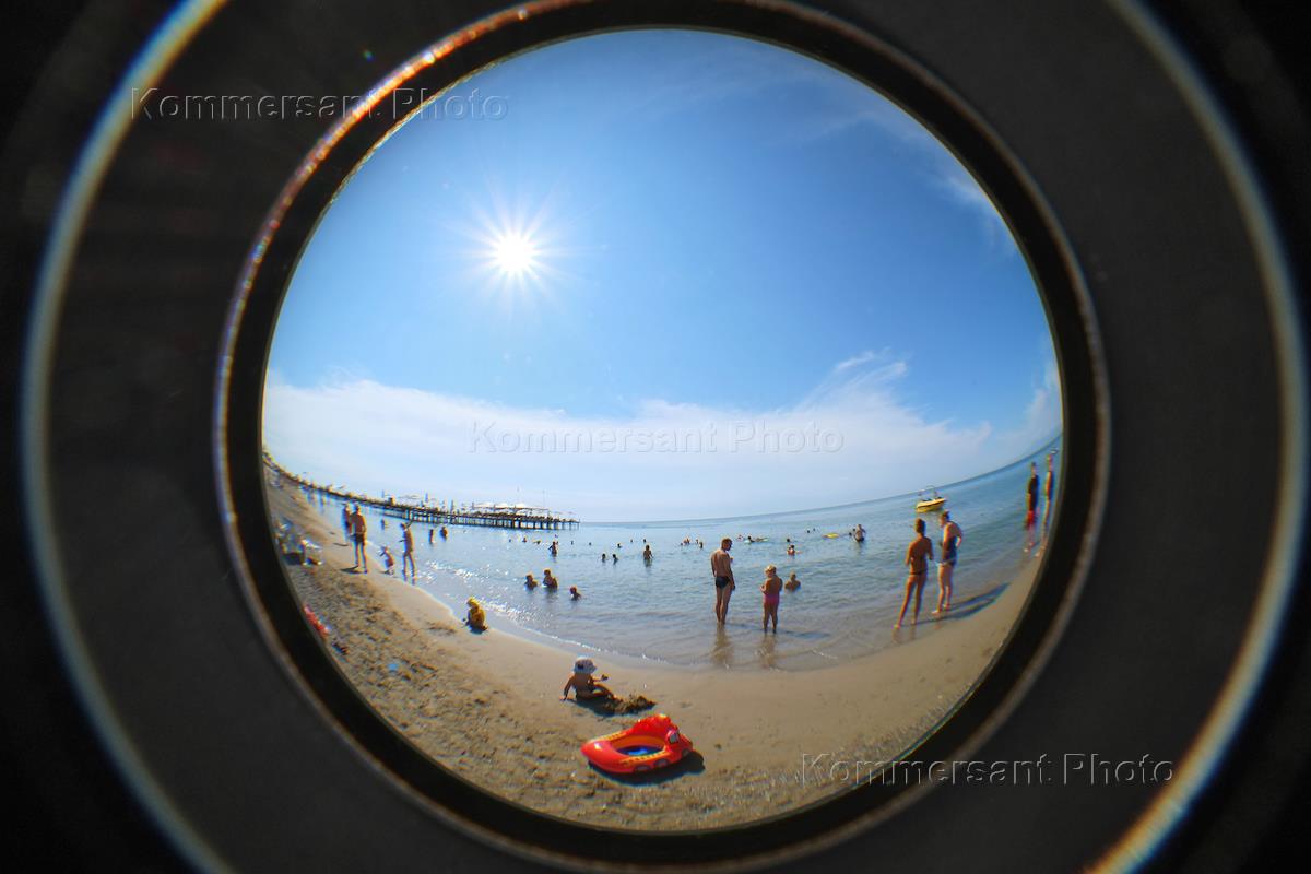 Жанровая фотография. Туристы во время отдыха на пляже Средиземного моря.