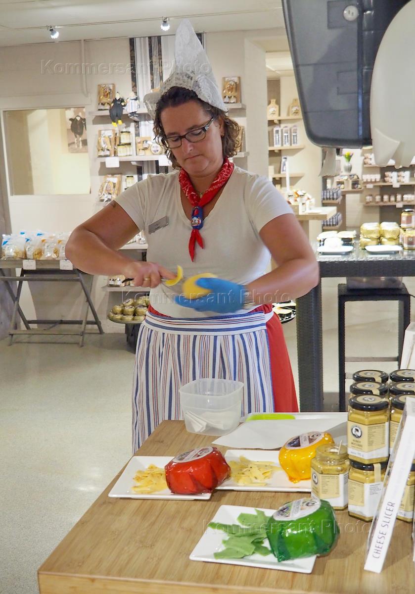 Жанровая фотография. Магазин сыра. Женщина в национальном костюме.