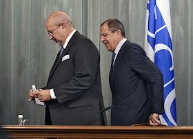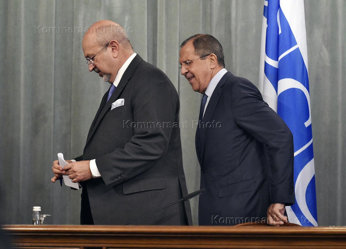 Министр иностранных дел России Сергей Лавров (слева) и генеральный секретарь Организации по…