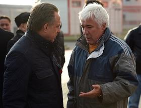 Министр спорта России Виталий Мутко (слева) и тренер по футболу Евгений Ловчев (справа) во время…