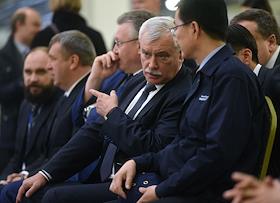 Губернатор Санкт-Петербурга Георгий Полтавченко (в центре) на церемонии выпуска миллионного…