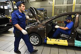 Церемония выпуска миллионного автомобиля на российском заводе компании Hyundai Motor. Сборочный…