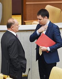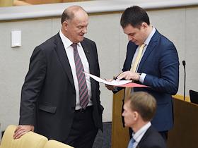 Лидер Коммунистической партии России Геннадий Зюганов (слева) во время заседания Государственной…