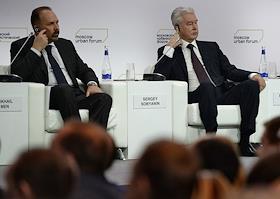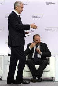 Мэр Москвы Сергей Собянин (справа) на московском урбанистическом форуме – 2015 в ЦВЗ Манеж.