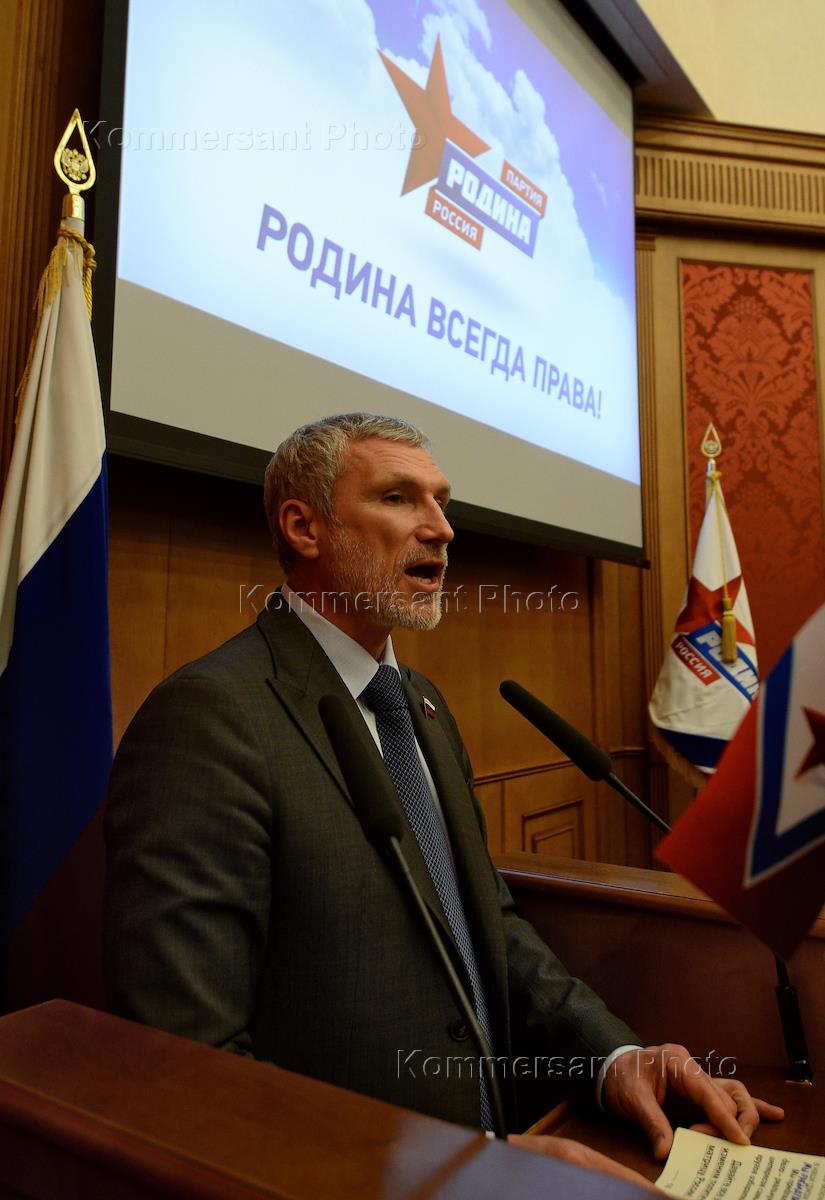 Лидер партии "Родина", член комитета Государственной думы по обороне Алексей Журавлев на съезде…