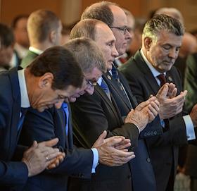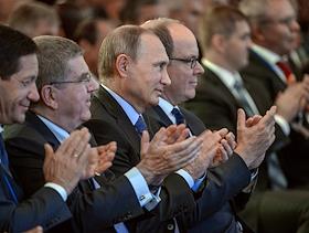 Слева направо: президент России Владимир Путин, патрон Всемирной Ассоциации Олимпийцев, член МОК…