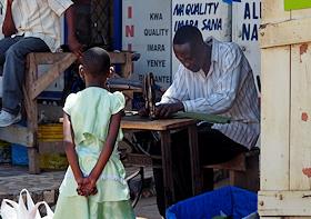 Виды города Моши (Moshi). Жанровая фотография. Швейная мастерская на улице.