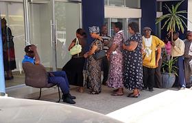 Виды города Моши (Moshi). Жанровая фотография. Очередь к банкомату.