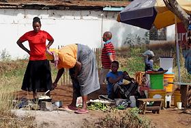 Виды города Моши (Moshi). Жанровая фотография. Cемья готовит еду на обочине дороги.