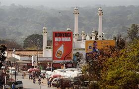 Виды города Моши (Moshi). Реклама водки Konyagi на фоне мечети.