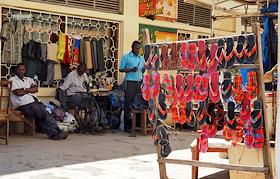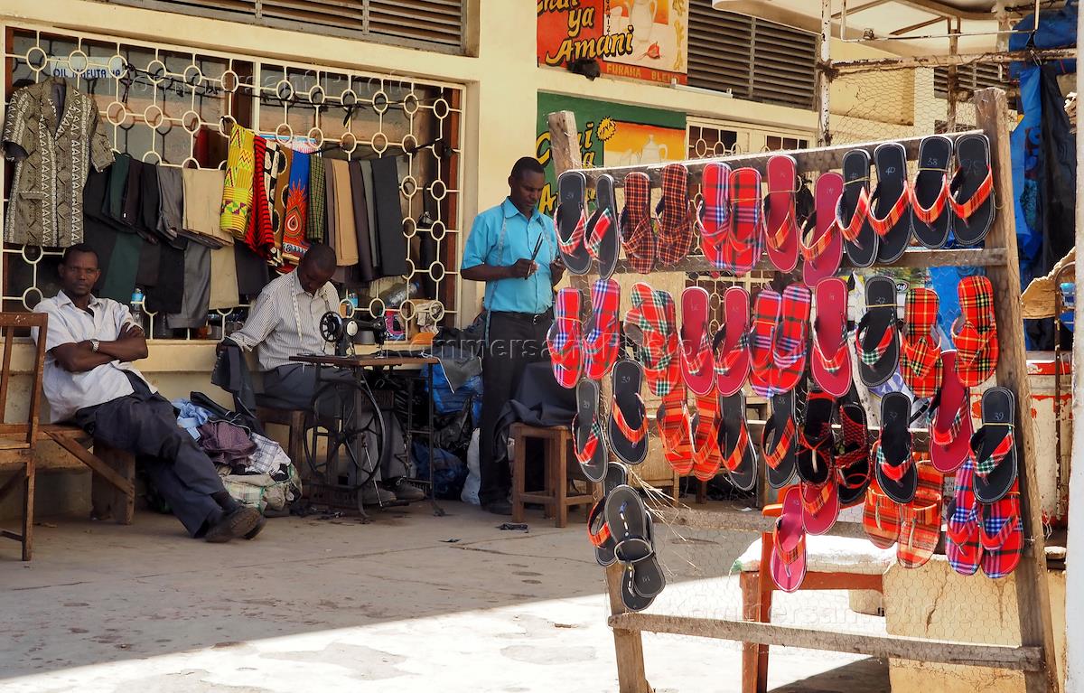 Виды города Моши (Moshi). Жанровая фотография. Продажа пляжных тапок.