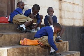 Мунициппальная начальная школа "Мавензи". Дети в школьном дворе во время перемены.