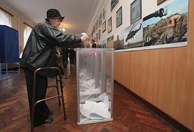 Выборы мэра и кандидатов в депутаты городского совета Киева. Голосование на одном из участков.