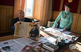 Генеральный директор компании "Агропромышленная фирма "Россия" Степан Гинин подписывает свою книгу.