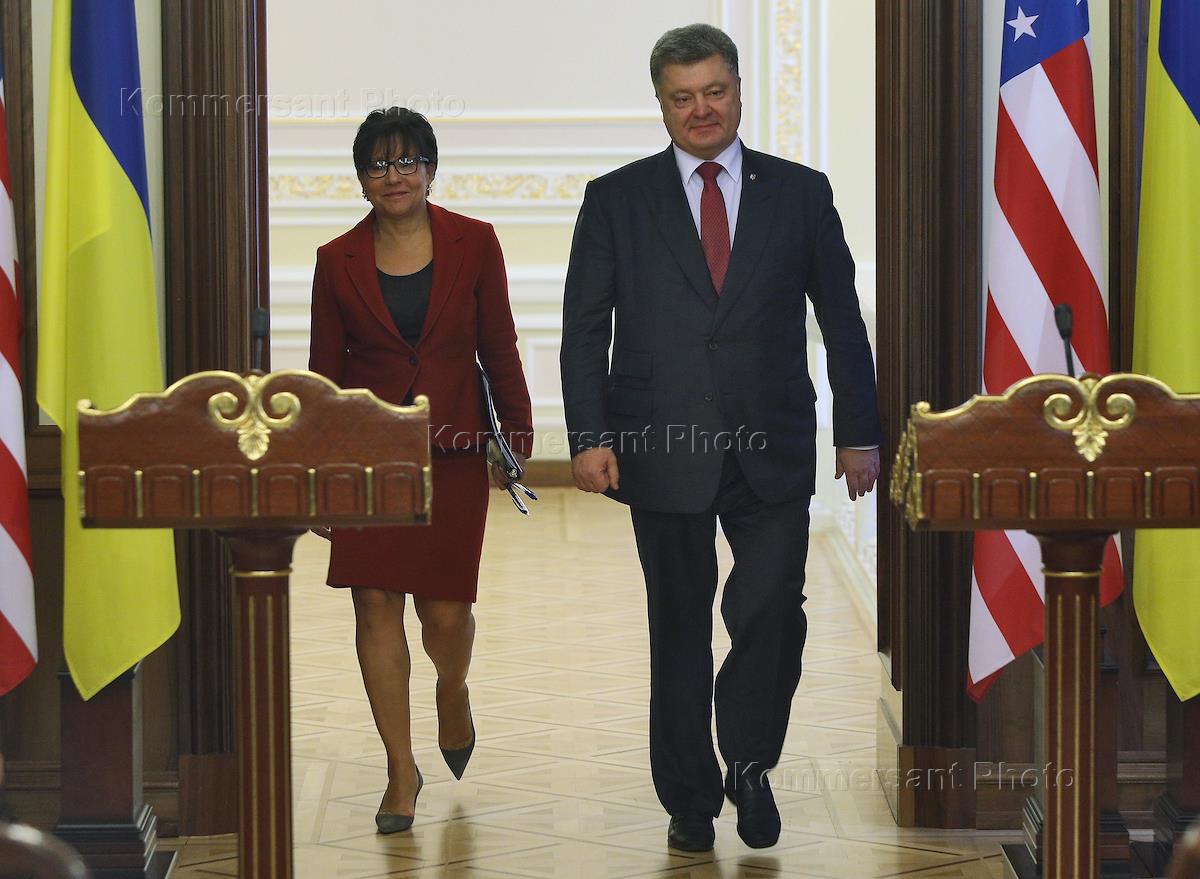 Министр торговли США Пенни Прицкер (слева) и президент Украины Петр Порошенко (справа) во время…