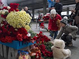 Возложение цветов перед терминалам аэропорта "Пулково" в память о жертвах авиакатастрофы в Египте.