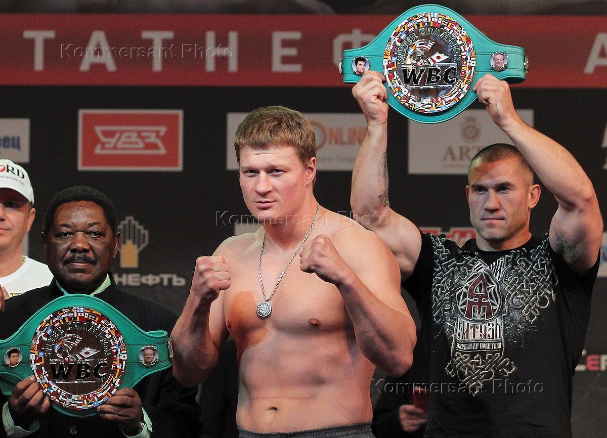 Официальная процедура взвешивания участников "Боксерского шоу". Боксер Александр Поветкин (в центре)…