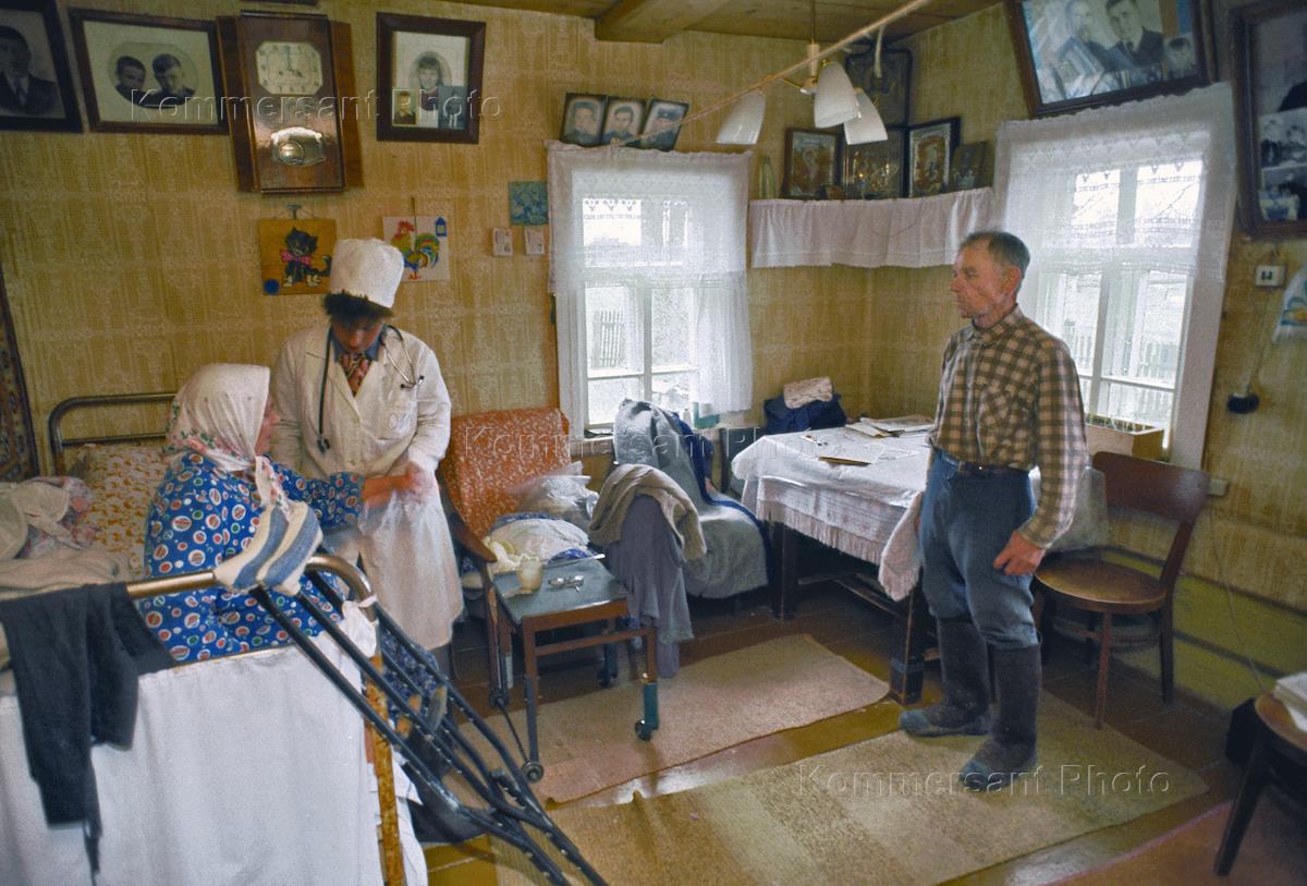Жанровая фотография. Участковый сельский врач во время визита к больной пожилой пациентке на дом.