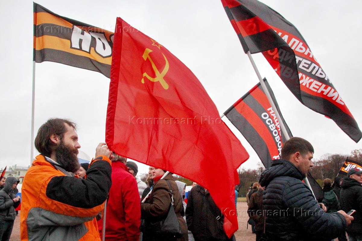 Общество Марсово поле. Панихида по жертвам авиакатастрофы в Египте, организованная Координационным советом патриотических сил Петербурга и Ленобласти после отказа в согласовании "Русского марша".