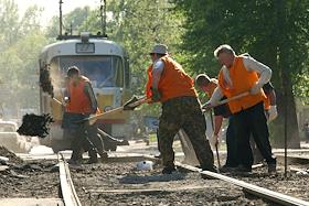 Ремонт трамвайных путей.