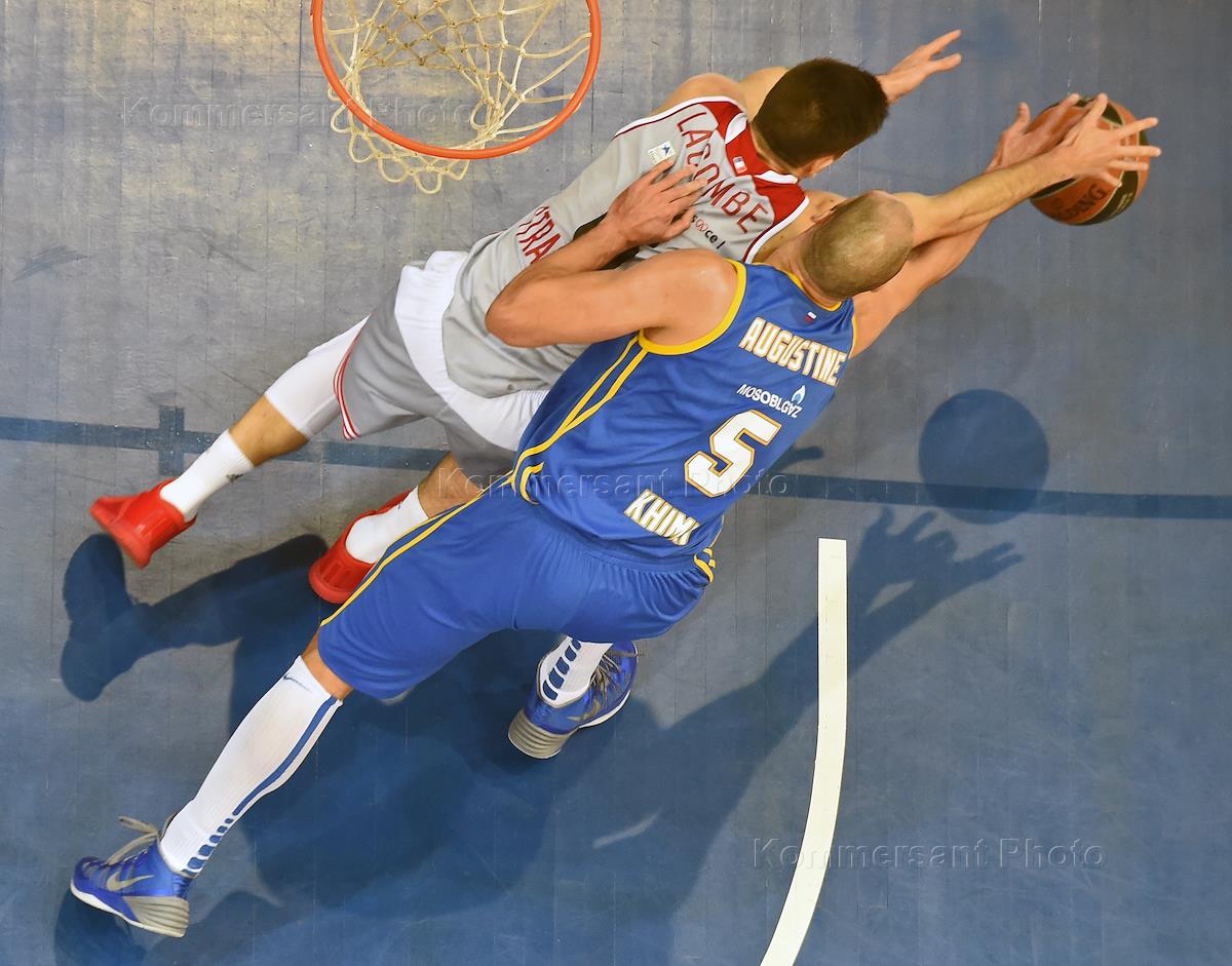 Евролига по баскетболу. Матч между командами "Химки" (Москсвкая область) - "Страсбур" (Страсбург) во дворце спорта "Крылатское".