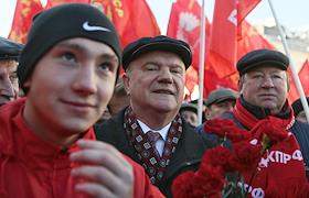 Политика Шествие и митинг, посвященные 98-й годовщине Великого Октября. Организаторы: ЦК КПРФ, МГК КПРФ, Движение в поддержку Армии, Союз Советских офицеров и Всероссийское женское движение «Надежда России» и др.
