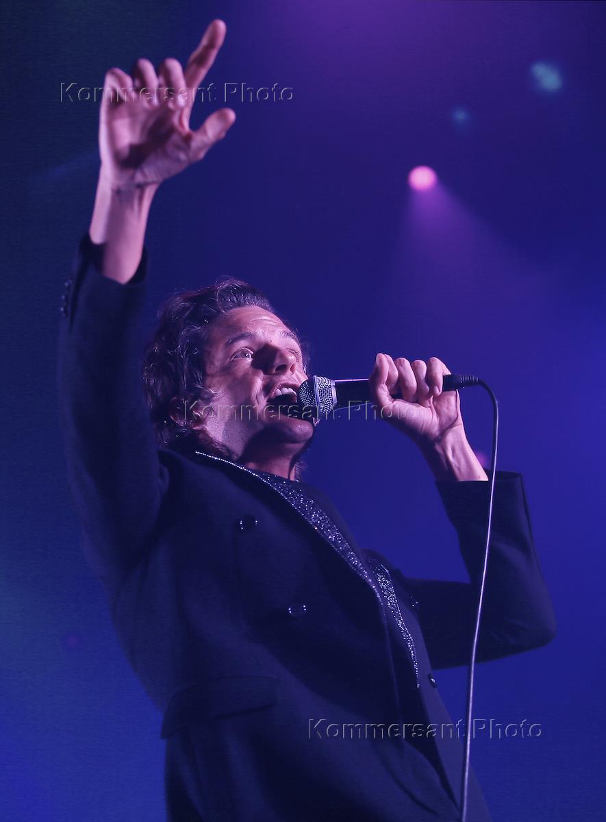 Солист группы The Killers Брэндон Флауэрс во время закрытого концерта в клубе Stadium Live.
