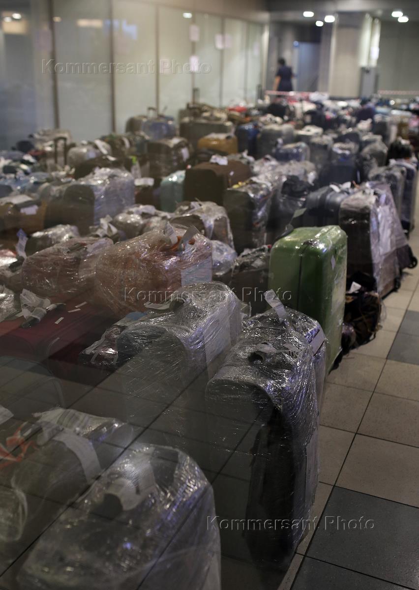 Чемоданы туристов из Египта в аэропорту Домодедово.